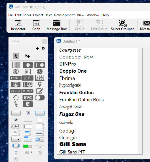 Thanks once again, Bernd, its very much appreciated. I've changed the code and checked the name of the typeface... on mouseup answer file "Select a Font..." put it into tFont start using font file tFont set the textfont of fld "fFont" to "Quicksand Light" end mouseup This is step one... Z1.png Step ...