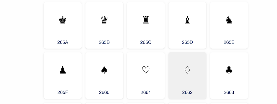 - Topic: HTML5 output: Diamond suit (♦) does not display correctly, others do