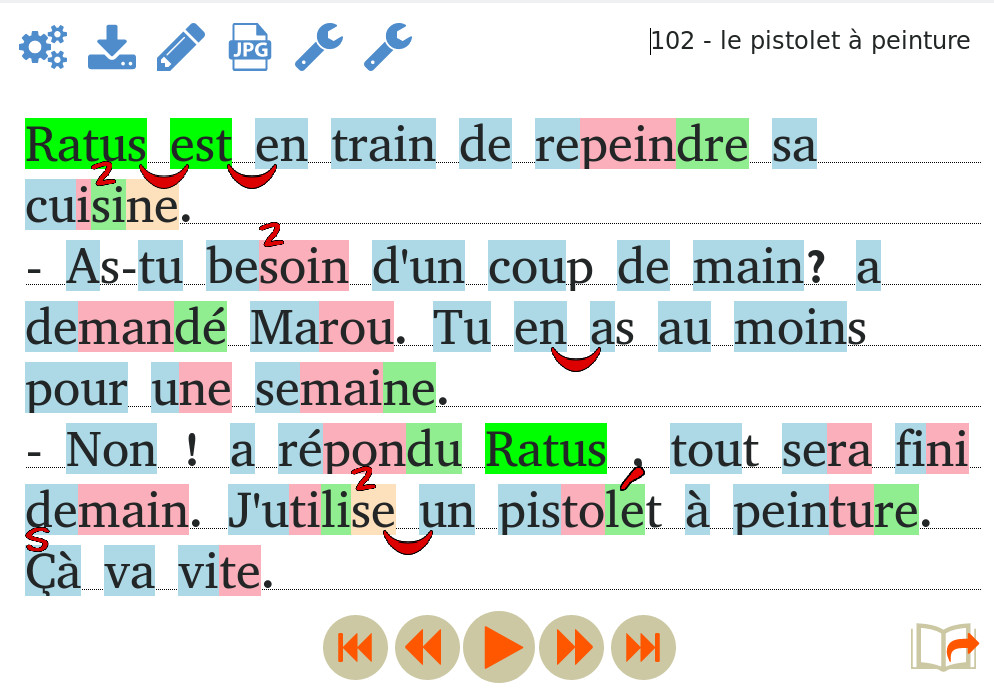 The COLORTEXT fonction colorize text according to the french syllabe parsing with many colors and addtionnal sign