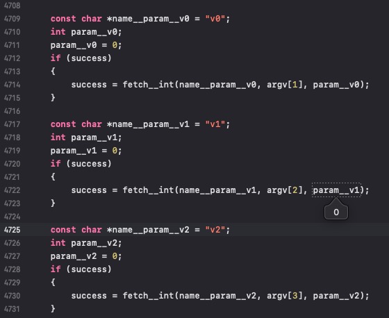 in v0 as integer