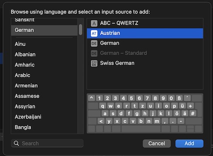 I CANNOT find a German AZERTY layout in the Mac Keyboard layouts on my machine: