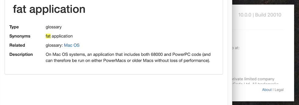 NOW I will be going through the Dictionary for references to MacOS 9 and earlier (I have already found some).