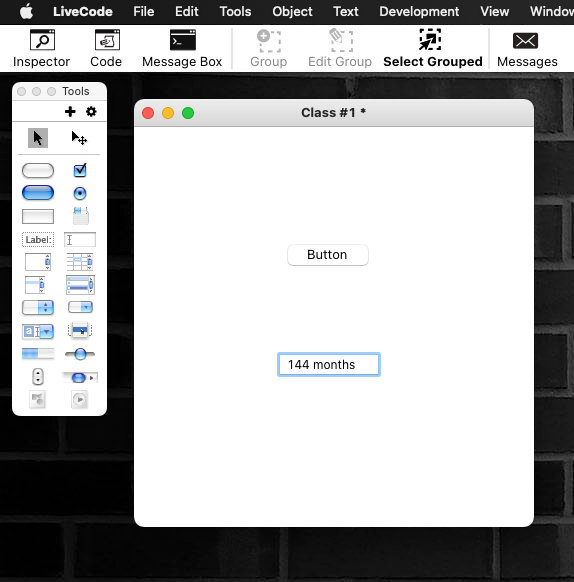 Let's put a BUTTON on our window by DRAGGING one from the TOOLS: