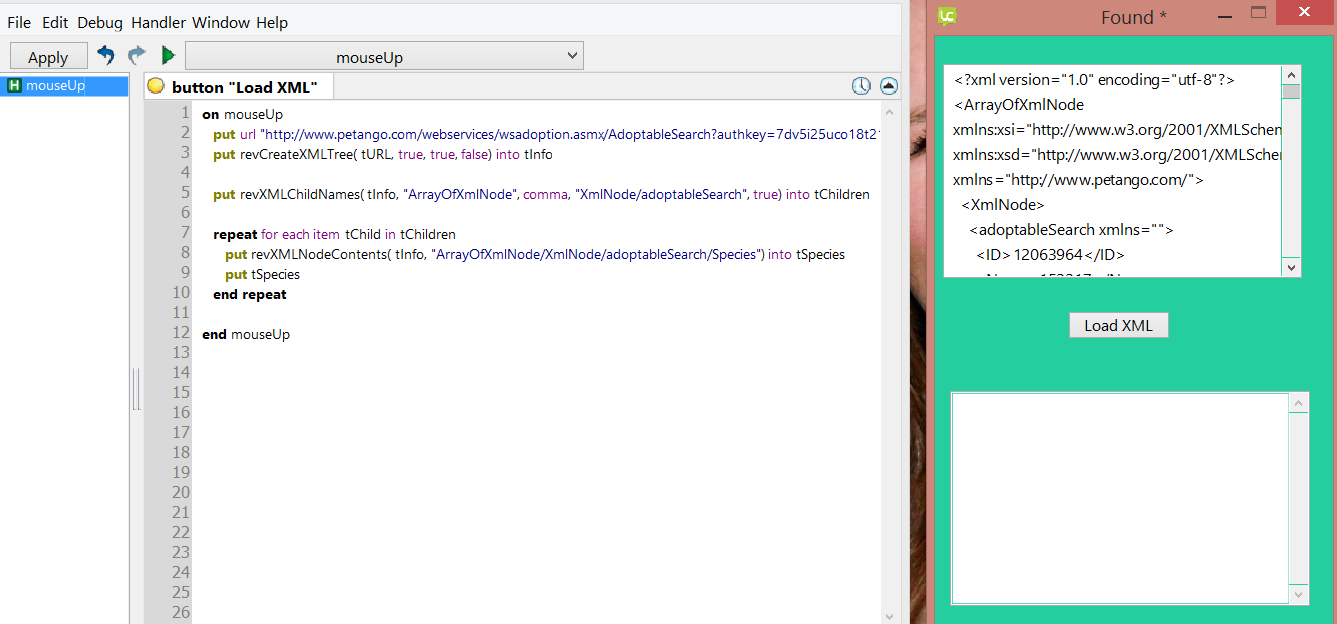 put revXMLChildNames( tInfo, "ArrayOfXmlNode/"&tChild&backslash, return, "adoptableSearch", true) into tAdoptable -- most of the times theirs just 1 node in here but you could add 1 more repeat in case there are more