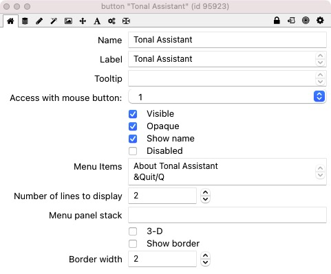 As long as I have this expert attention, though, a final (for now) issue: The menubar menus only show one item. Here's the properties pane for the first one: