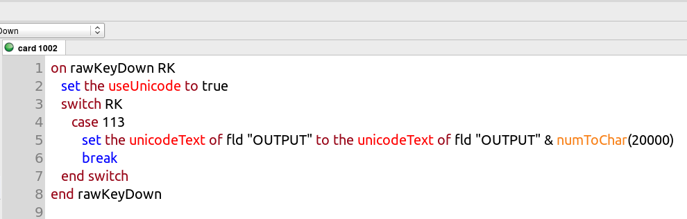 The new syntax for coping with Unicode characters in LiveCode 7 is just fantastic: no more fiddling around converting Hexadecimal numbers into Base 10. None of that extremely clunky "set the unicodeText of fld "xxx" to numToChar(7328)".