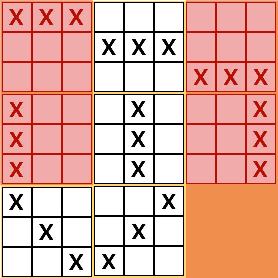 There are 8 ways either side can win the game.