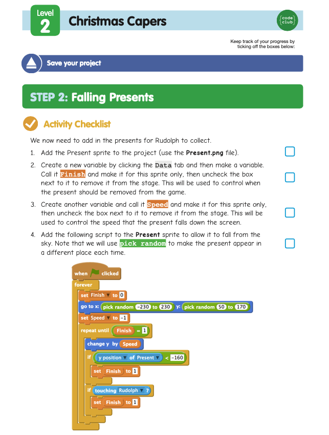 Children should be invited to use this code in a repeat loop inwith the "PLAY" button to