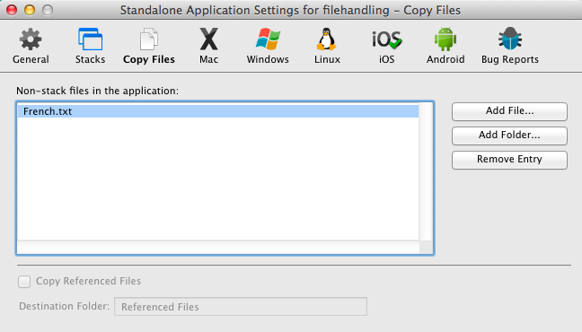 In "Standalone application settings" I put the txt file (folder "documents") in the copy file menu :