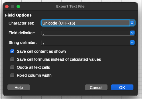 of setting one's chosen delimiter and exporting one's spreadsheet in that format . . .