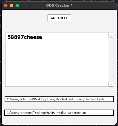 It does work: I am halfway through running up a stack to open the 'content.xml' file inwith an ODS thing; but guests are just arriving for supper, so, what with 'polite' conversation & alcohol intake will probably not complete the thing until tomorrow.