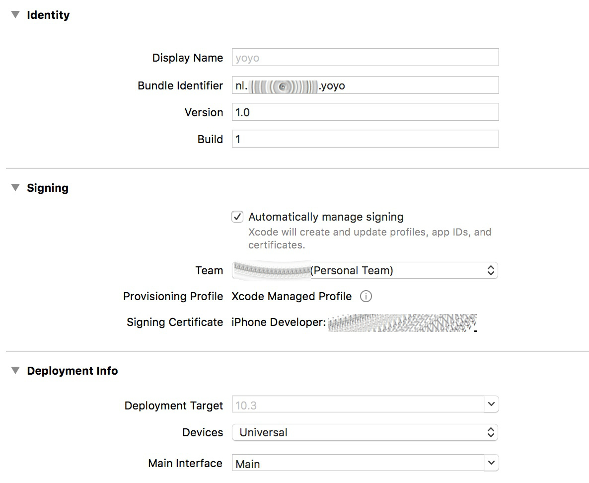 All is set to automatic. App Identifier and bundle identifier are correct.