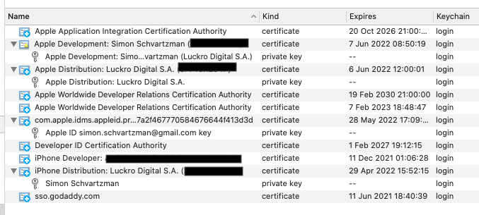 When switching to another Membership (I've 3 different Memberships as an Apple developer I'm facing another problem and I'm going to open another thread.