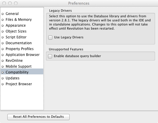 That Compatibility card is present in LiveCode 9.0