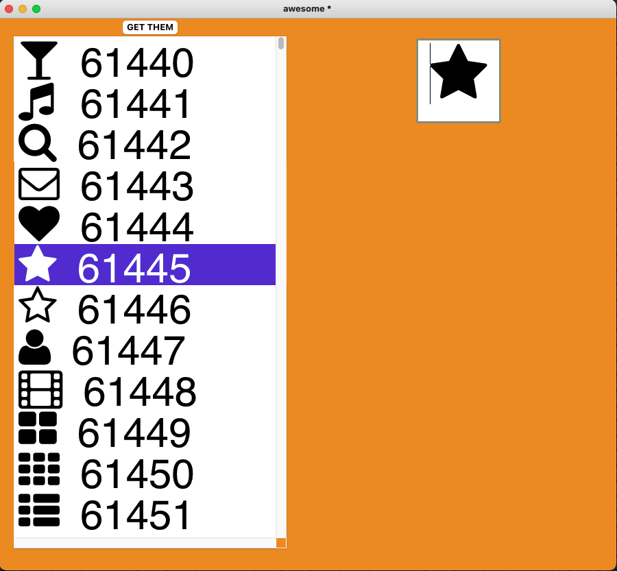 and those inwith the 'fontawesome.ttf' font contained inside the LiveCode .pkg file on my computer: