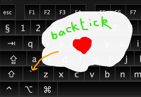 I'm seriously considering having a "backtick", or is that a `backtick` tattooed on my ***. 8)