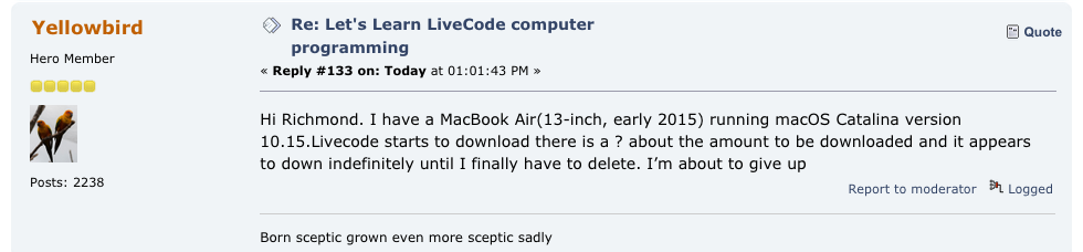 seems unable to download LiveCode to get started.