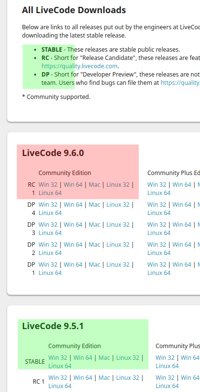 I am not sure which version of the LC engine I am using. When I look at About, I get something like LiveCode 8 .1 .1 | Build 14008, whereas the downloads link uses numbers like LiveCode 8 .1 .1 Indy edition STABLE, etc. How can I make absolutely sure that I am using a stable build and not some release candidate RC or DP build? Is here a master cross-referenced list of commit and build numbers somewhere? Thanks for the info...