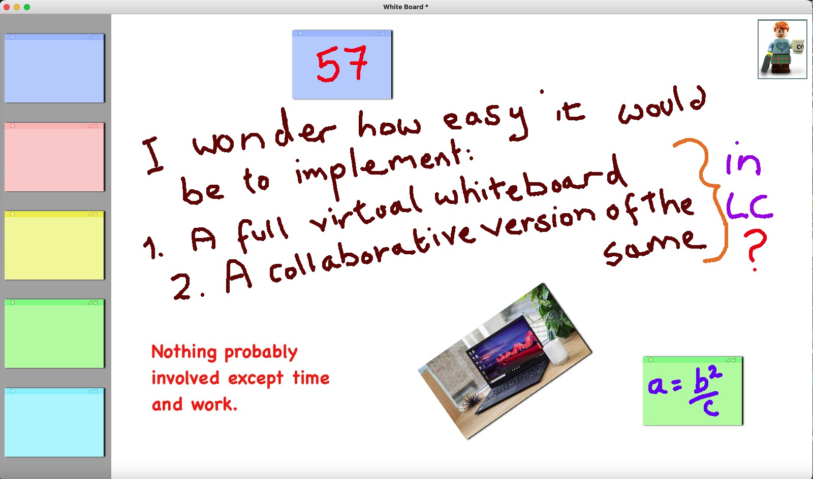 OK, OK: a whiteboard was a bit disingenuous as what I did during ZOOM sessions was: