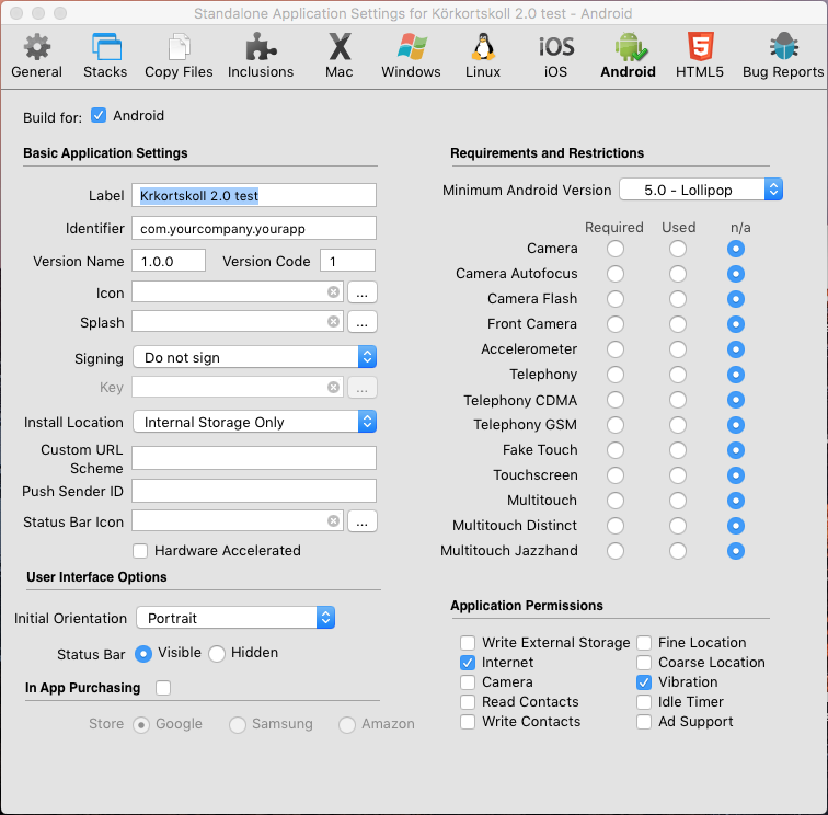 But so suddenly, I could not test it because all stand alone settings had gone back to their default settings, ie build for windows, mac, linux, but not for Android or iOS.