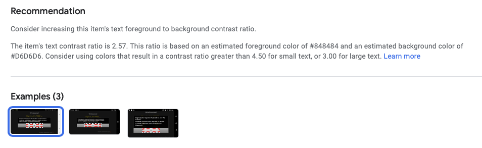 Hi and thanks for the quick reply. My app is not exactly useful for visually impaired persons, so I might ignore the warning. But still the reports and the recommended actions given by google are often rather cryptic, I mostly have no idea how to address them with Livecode. When I orginally used the browser widget in my app I got tons of warnings, I left the browser widget out eventually, now the only warning is about accessibility. Best. oliver