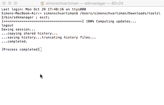 Hi @jaque, I really appreciate your time and patience to help me...it seems my "android" file is gone, so I followed your instructions and downloaded a fresh version of the SDK command line for Mac.