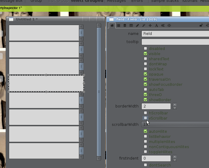 Having said that, your first picture shows fields without scrollbars, inside a group that has a single scrollbar, which tells me the fields are not individually scrolling as your second picture shows. That is easy enough to accomplish, anyway, just remove the vScrollbar from the fields.