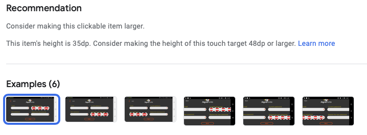I usually make my buttons and field text somewhat larger, so maybe I'd get the same warnings if I didn't. There are recommended sizes in the Android HIG to accommodate mobile displays with high resolution and I try to follow those.