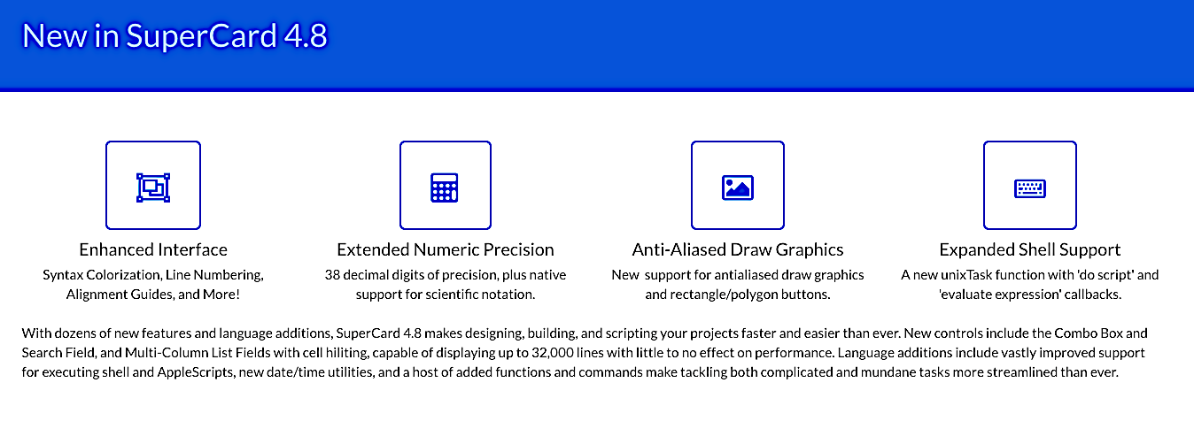 "SuperCard remains a 32-bit application and will continue to be for the foreseeable future."