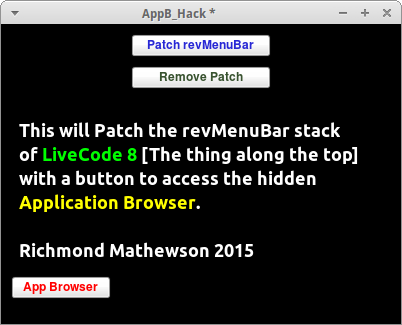 RappBrowseBW.livecode will place a button to access the Application Browser on the revMenuBar stack AND invert the colours of both the revMenuBar