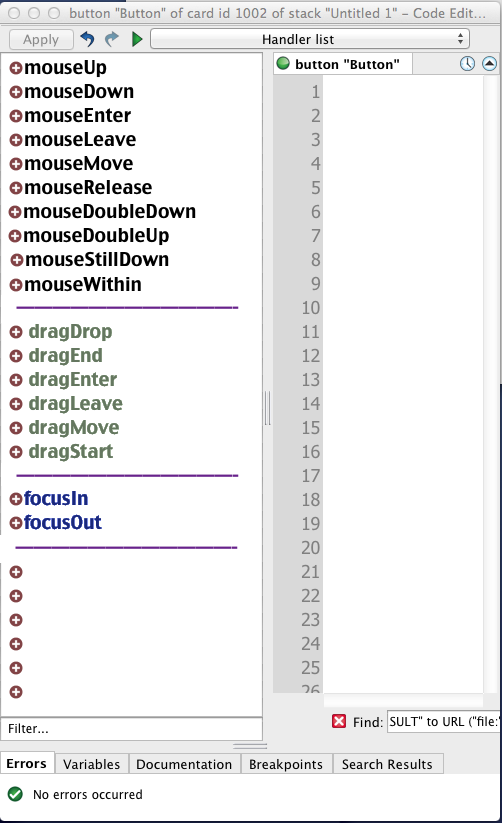 I notice, now, that I have got 'mouseDown' twice, so that should give you some idea of what was going on: