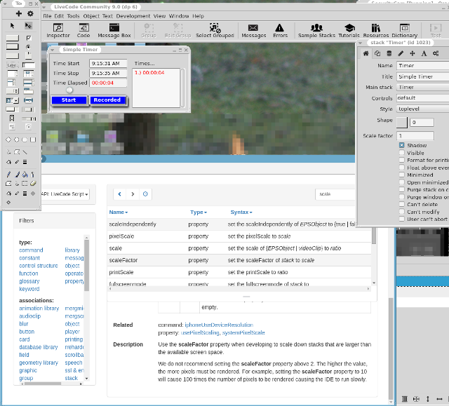 Also see a bit of an odd behavior in the windows with the dictionary, in that some of the IDE windows sit over it, and some under it. I had the menu, tools, inspector, and project browser open when I opened the dictionary. The inspector, tools and main menu all were on top , the project browser properly went below it. I would think that whatever window is 'active' should be on top in an IDE, as opposed to a developed app where it might be desirable to have a window open on top of something else (tool window for instance).