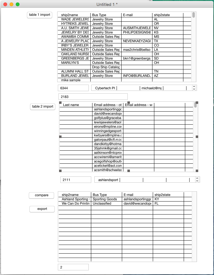 I have some data in table one that i need to matchup with table 2. By email address. (see attachment)