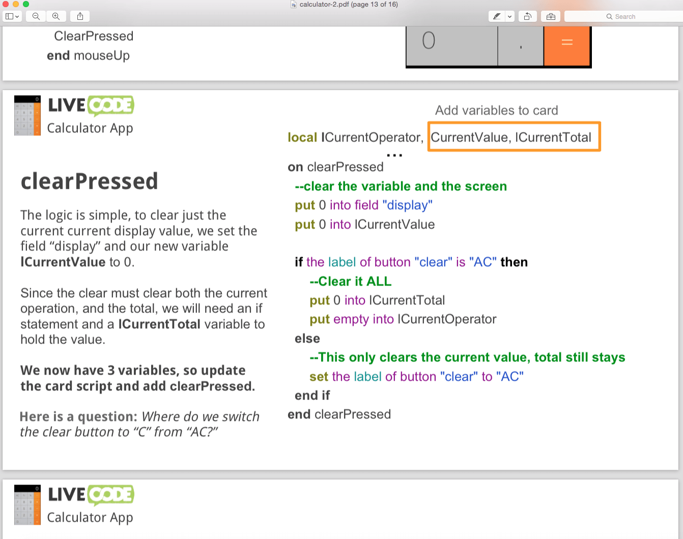 Learn it with livecode (calculator tutorial problem)