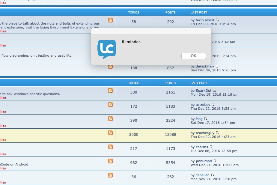 I would be a good idea to note IMMEDIATELY that you are looking for a solution for MOBILE,DR White wrote:IWhen, I press "Home" on my iPhone 6, while the LC app is counting up, I do not see the field counting up or the message box, when the counter reaches 10.