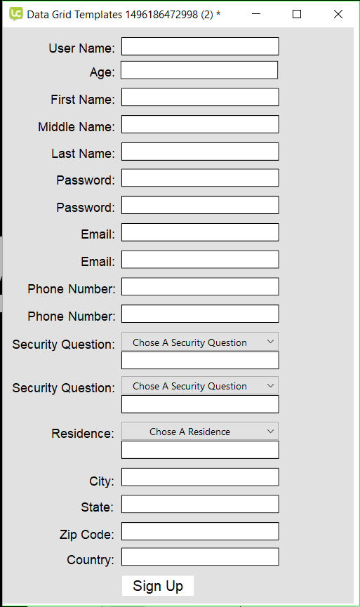 I have no idear what's wrong with it. I simply want this row template to display for the user to enter data into, then it goes into an sqlite server which is another part (Which works( But I didn't use a Datagrid thought)).