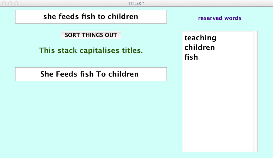 This is suitable for titles, which are usually short. If you want to special-case longer text, using "repeat for each..." and putting the revised text after a new variable is faster. You'd also need to account for line breaks.