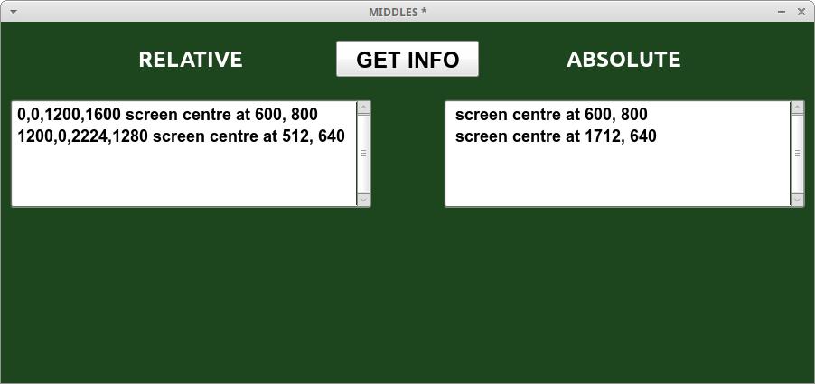 Here is a stack that gives you the location of monitor centres in a way that LiveCode