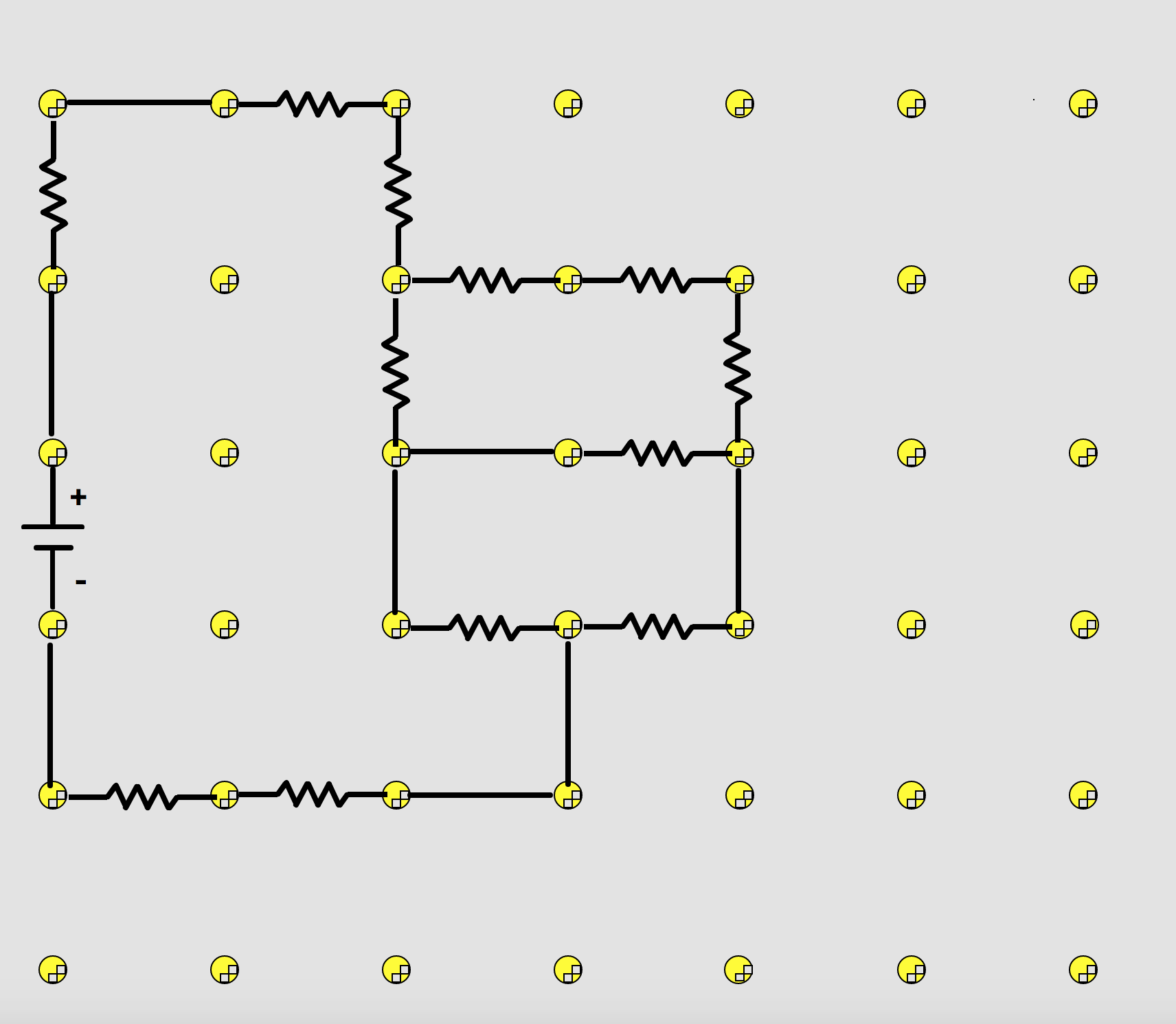 The intent of this app is to provide a tool for finding the total resistance of groups of resistors that the user configures between the dots. To calculate the total resistance using the "Mesh Current" method, I need to have current flow through each circuit. That is why there is a voltage source and why the loops have to be closed.