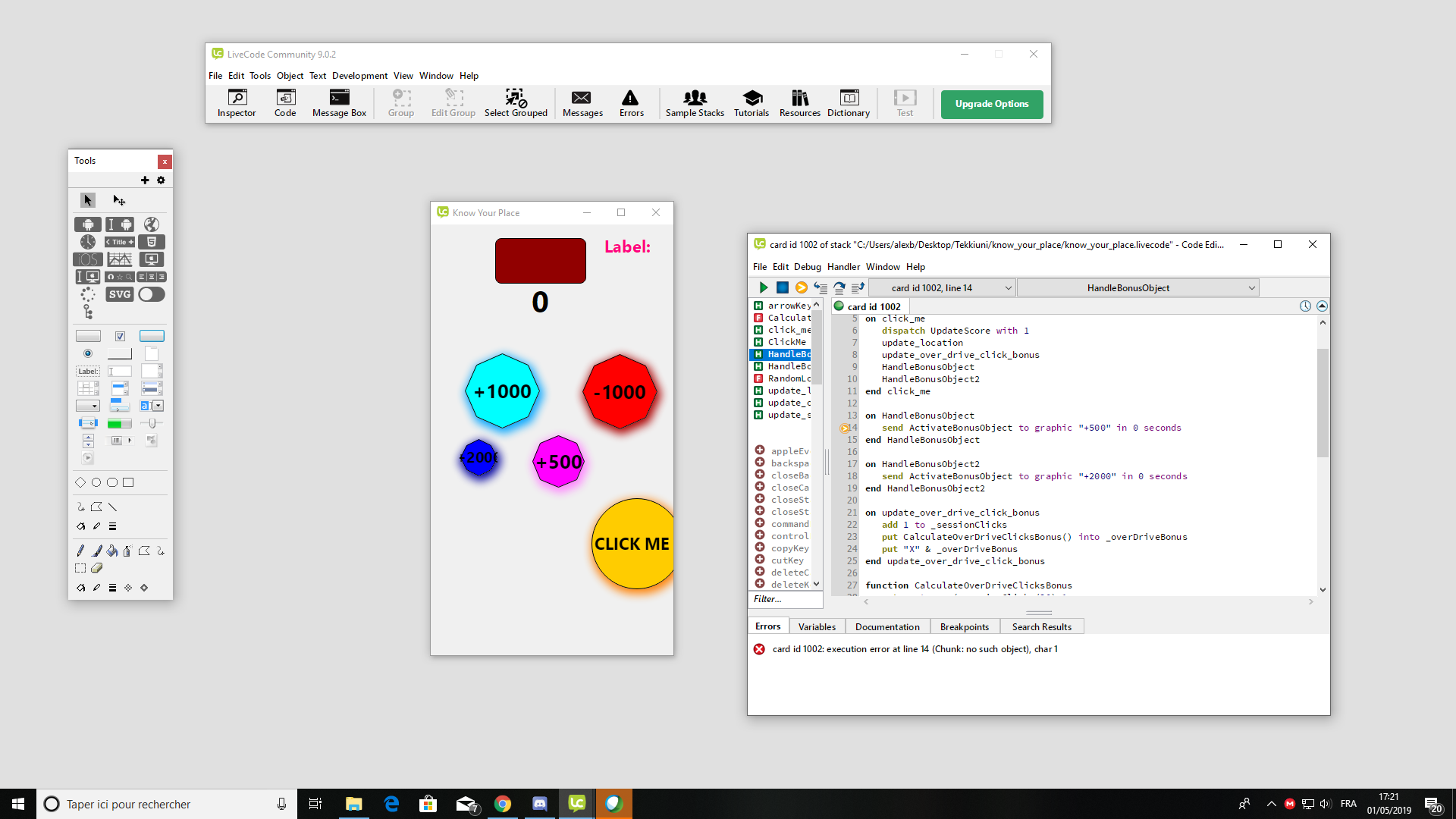 3. Not sure, but I think this is because you named your object with a NUMBER, which is a NOGO in LC! Since we have no "type definition" in LC, the engine thinks you mean graphic number 500 or graphic number 2000 and you do not have that much graphics on your card!