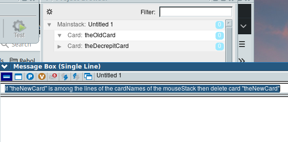 if "theNewCard" is among the lines of the cardNames [of stack] then delete card "theNewCard"