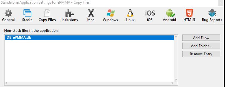 Secondly, adding the files in the Copy Files will place them in the specialFolderPath("resources") location. This is non-writable on Android. Even opening the sqlite database will require writable privileges whether you want to update and save changes or not. So on opening the app you will need to check for existence of the file in the specialFolderPath("documents") location, and if not already there, then copy it from "resources" to "documents". (Hint: use the "binfile" format to copy the binary sqlite database file, "file" will corrupt the database with munged up line ending conversions.)