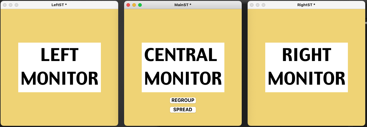 You can then set the loc or topLeft of any stack to the screen coordinates that suit you. I place the Script Editor on one monitortor, with its rect set to the rect of that monitor, and use the other one to hold my working stacks, message box, inspectors, etc.