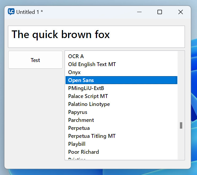 I'm going to park this now. I'm disappointed that Livecode can't do something as basic as display typefaces.