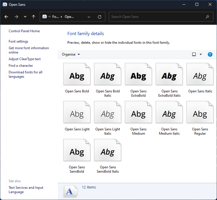 As previously downloaded open sans from google, open the static fonts, selected all and right-clicked to install.