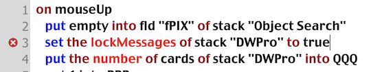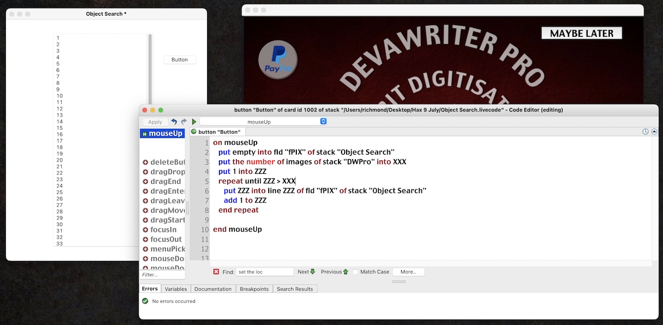 HOWEVER, while the object counter stack is flipping through the cards of my Devawriter Pro stack it "falls over" code inwith the DWPro stack: