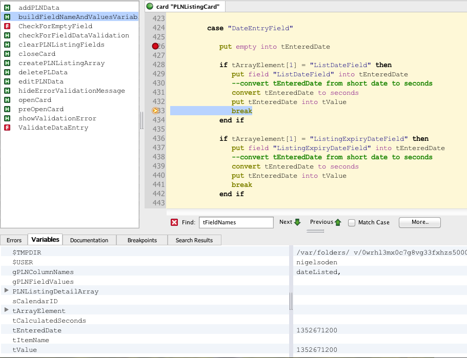 put field "OpenHourDateField" into tEnteredDate