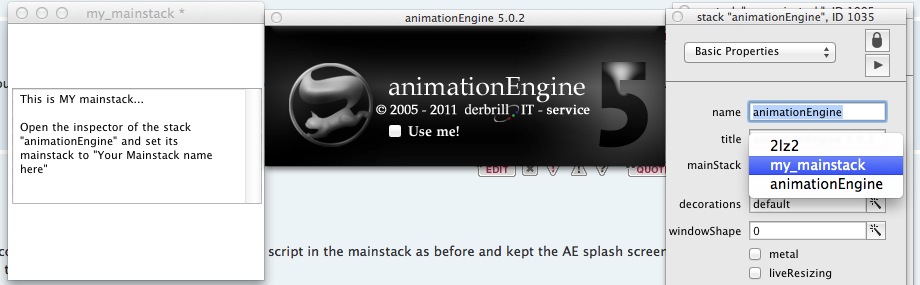 You need to make stack "animationEngine" a substack of YOUR stack,