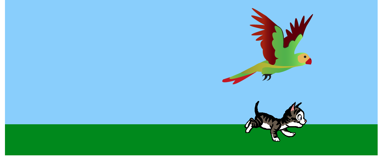 "Notice the curved motion path of the bird. It was achieved using a quadratic motion path with the auto orient feature turned on which causes the bird to orient along the path of its motion."