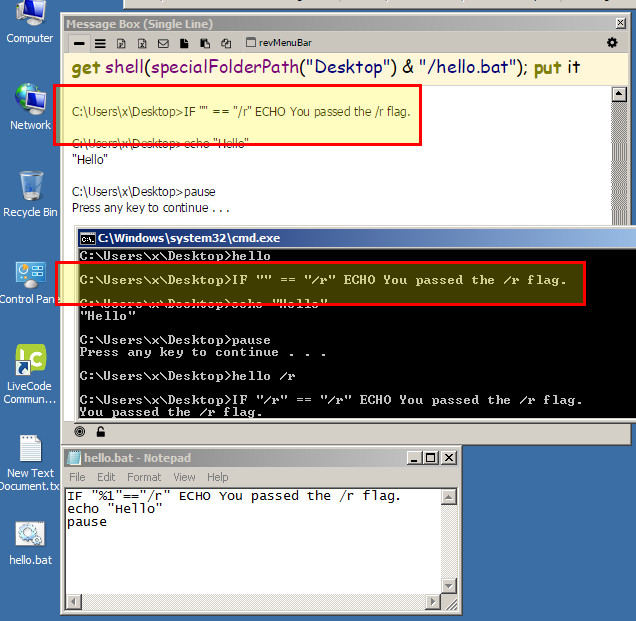 put "cmd /k" && tFile into tFile get shell (tFile) put it